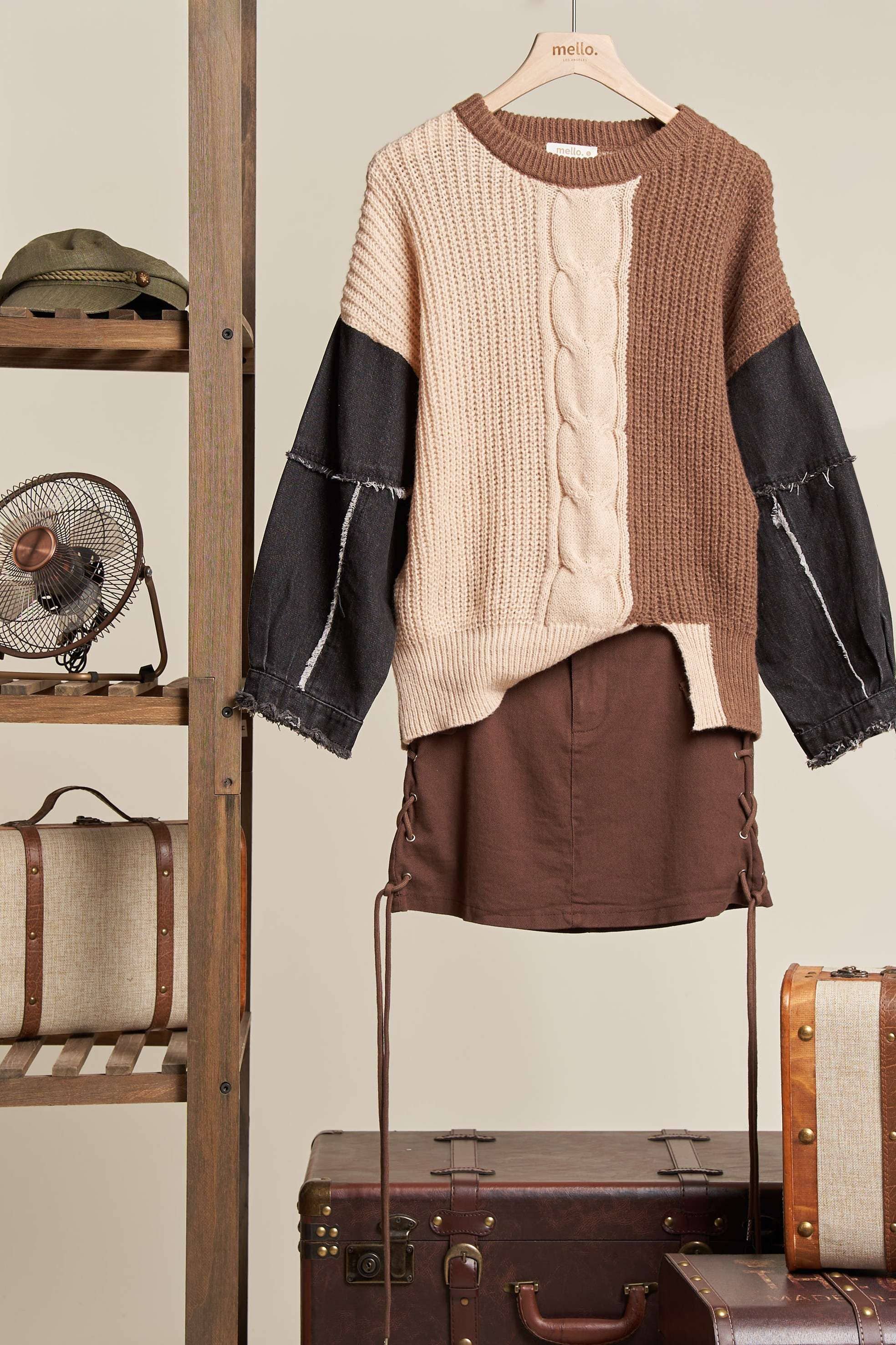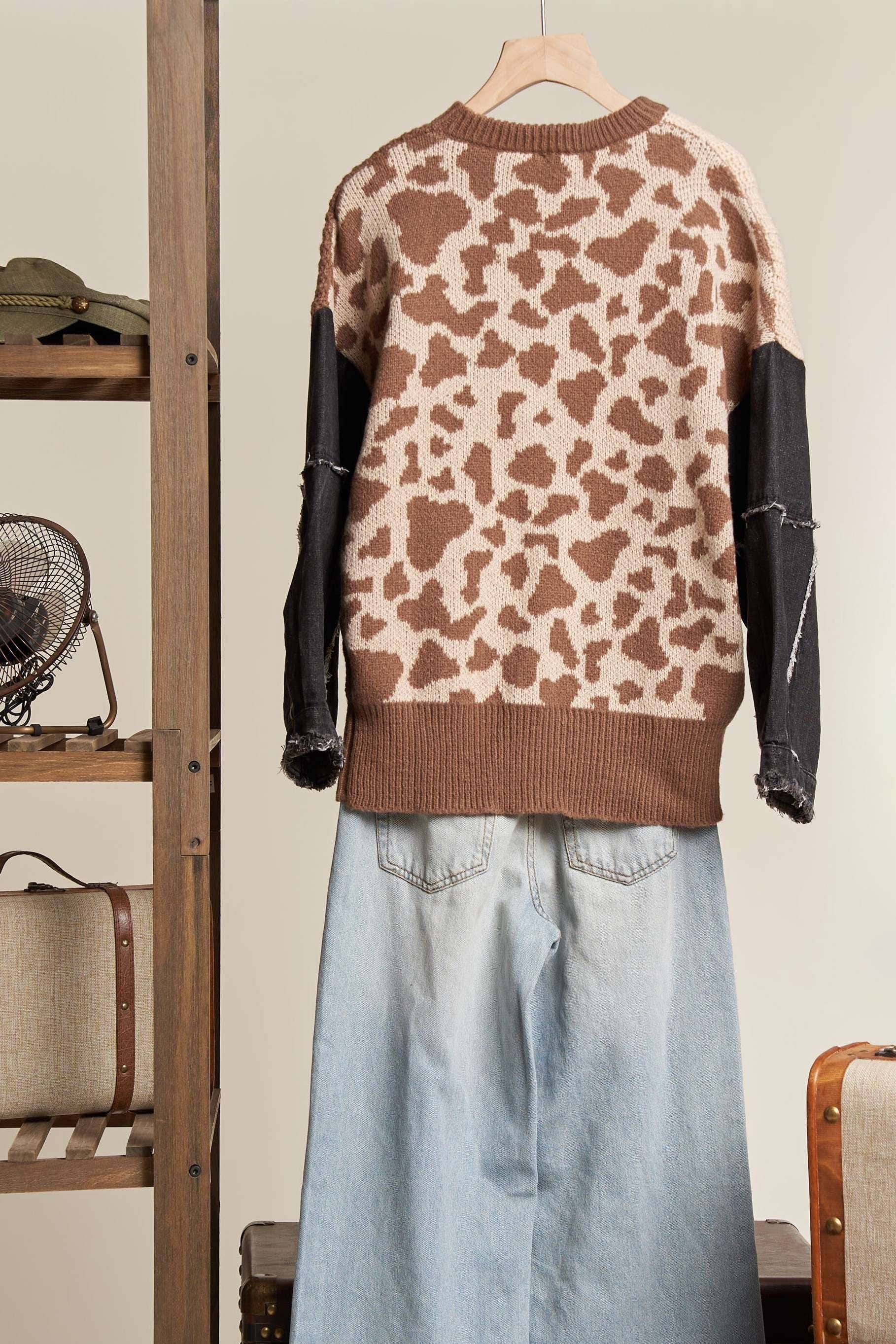 Leopard Denim Sleeve Sweater