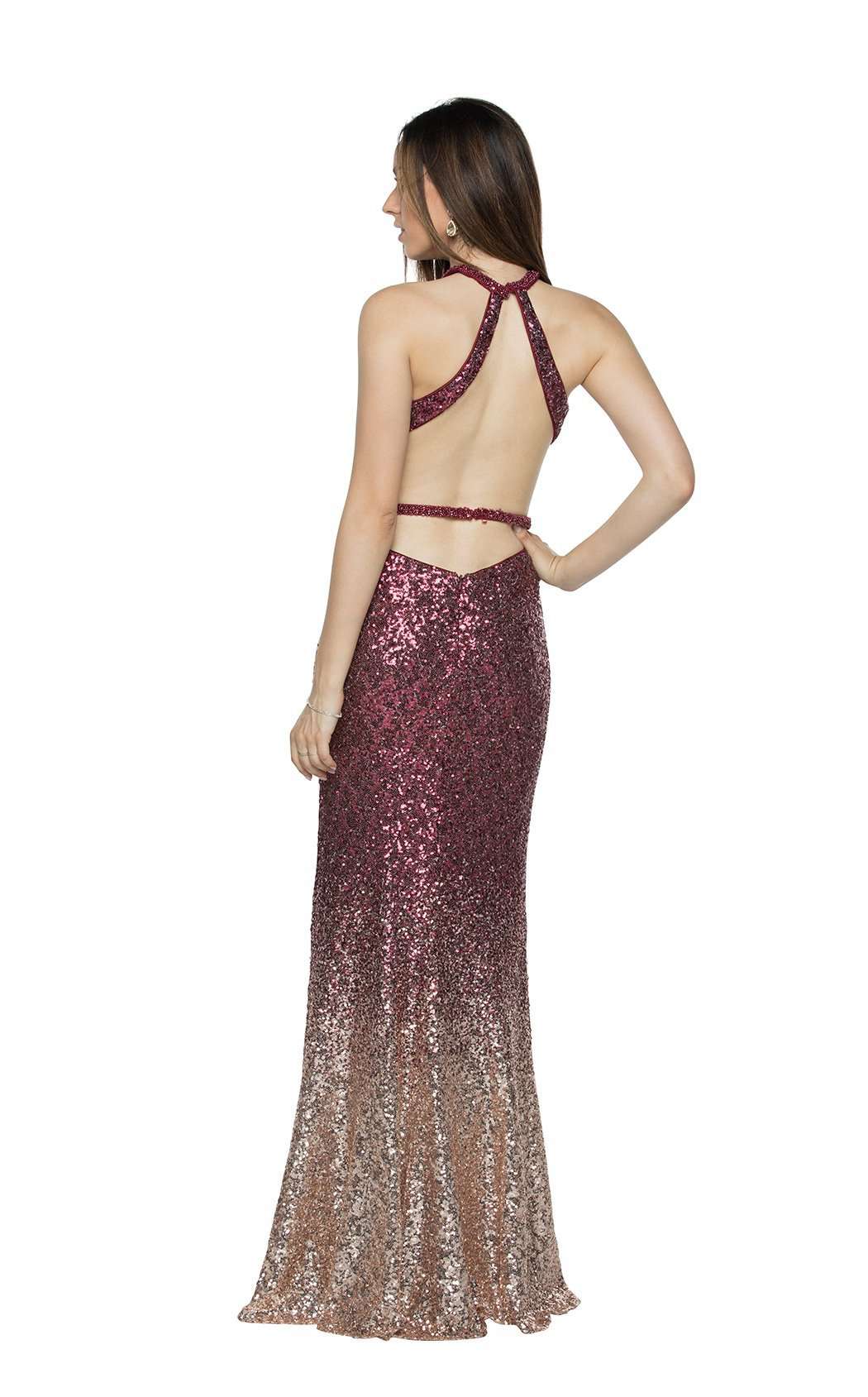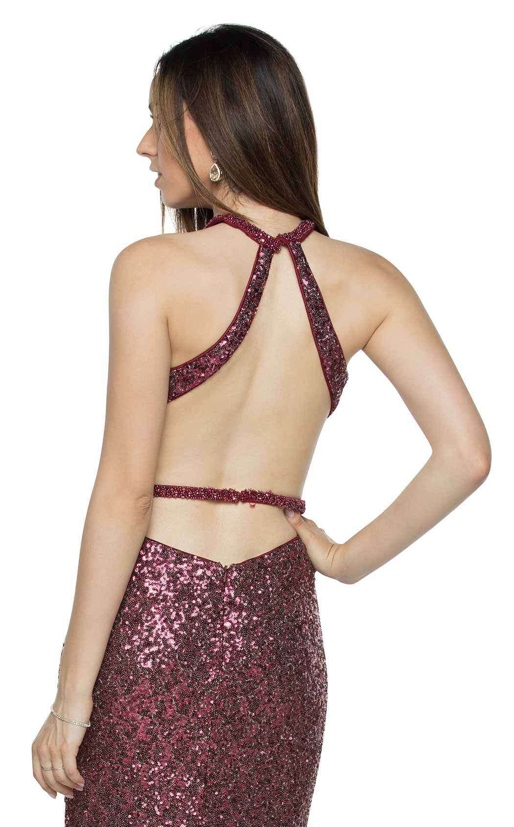 Last Dress: Burgundy Halter Mermaid Prom Dress – Cutout Bodice with Open Back Detail - prom dress_E2101_WINE_18